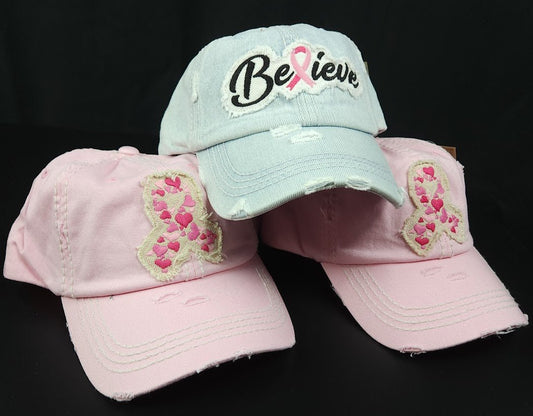 Believe Breast Cancer Awareness Vintage Distressed Baseball Cap